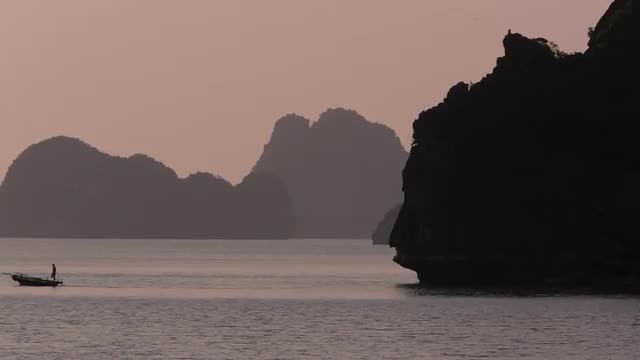 690653 - WS Fishing Boat at dusk in Ha Long Bay / Vietnam