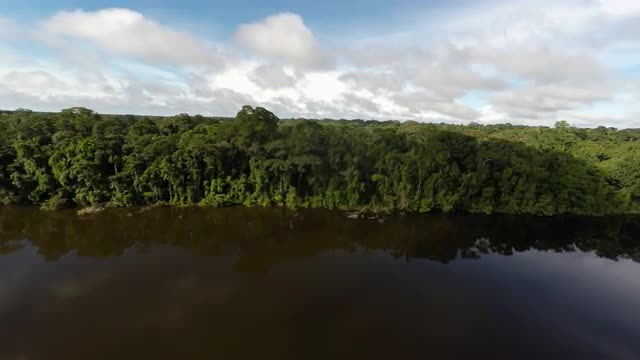 > Ascending Aerial Slide of Amazon River and Rainforest