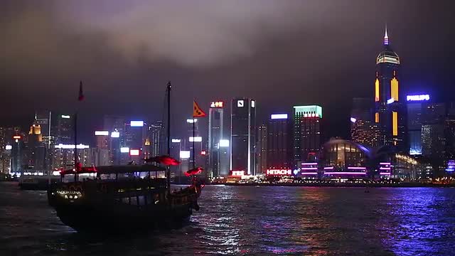 WS Boats in harbor at night / Hong Kong, China