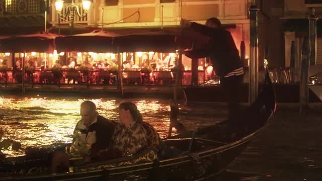 691018 - WS Night View Boats Floating on Grand Canal / Venice, Italy