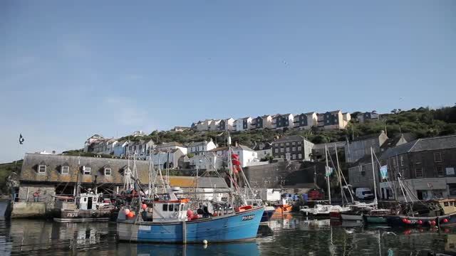 > WS Fishing Boats Moored in Harbour / Cornwall, England, UK