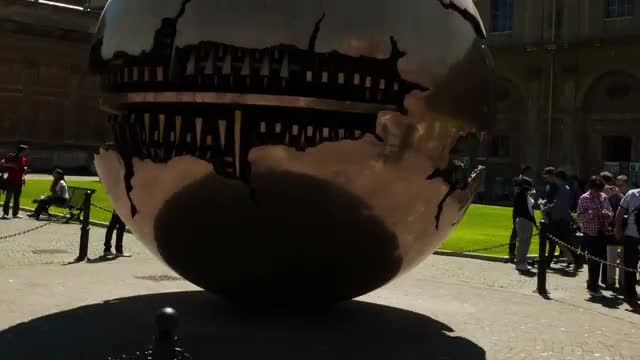 4K UHD Timelapse footage (202 frames) of a statue in front of the Temple of the Emerald Buddha in Bangkok, Thailand. Camera dollies left.