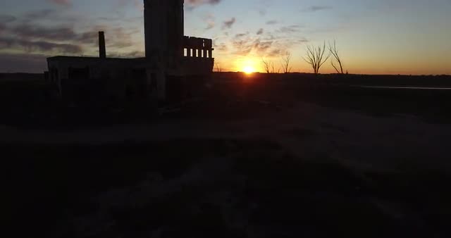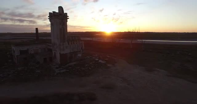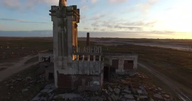 317742 - Static shot of ruins in an open field