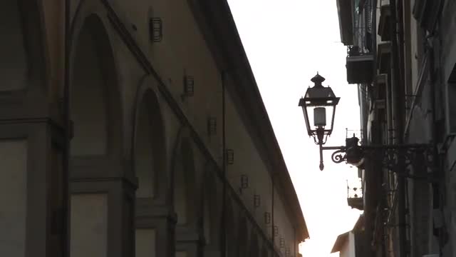 691676 - WS LD Motorcycle Going down Narrow Street / Florence, Italy