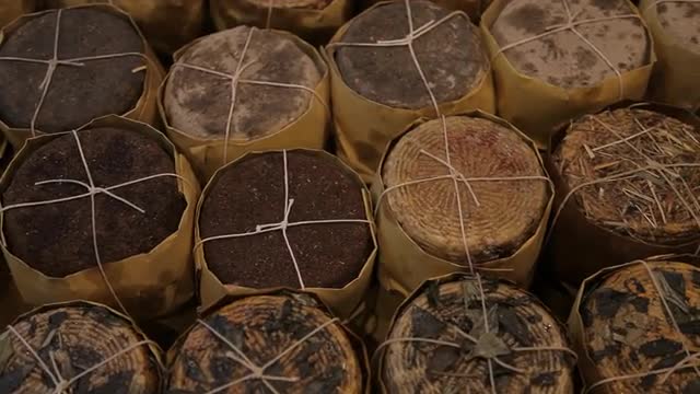 > MH TD Rows of Different Cheese for Sale in Market / Tuscany, Italy