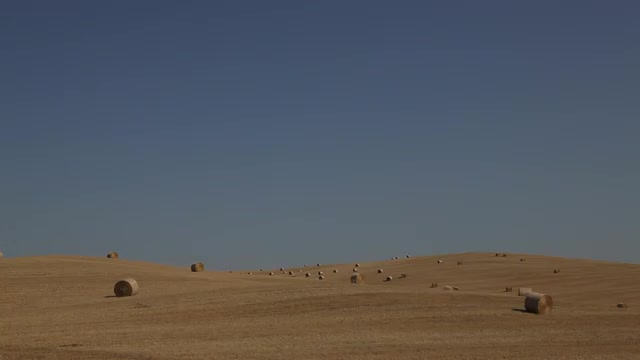 WS PAN Harvested field with hay bales / Tuscany, Italy