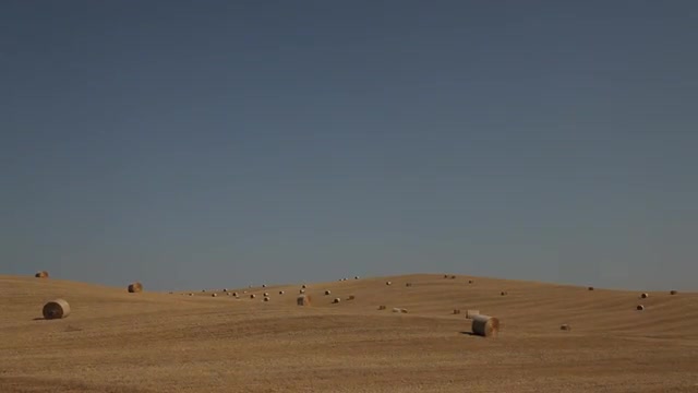 > WS PAN Harvested field with hay bales / Tuscany, Italy