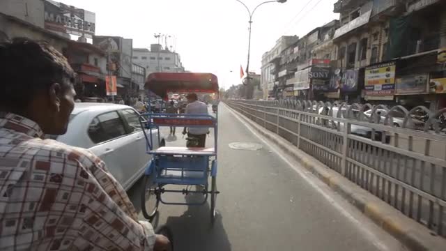 692095 - POV WS PAN Busy market street / New Delhi, India