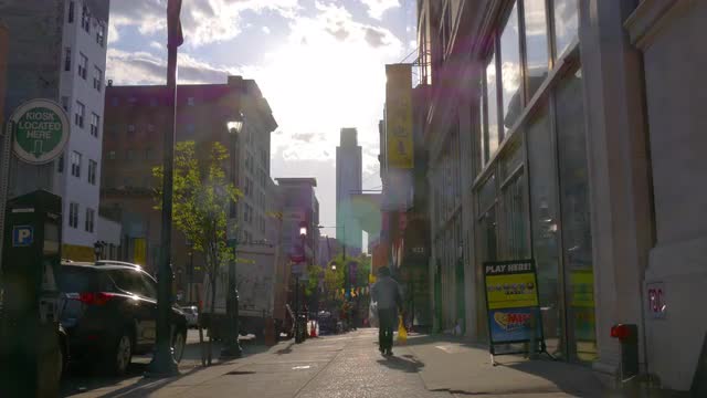 755086 - philadelphia sunset walking street view 4k pennsylvania usa