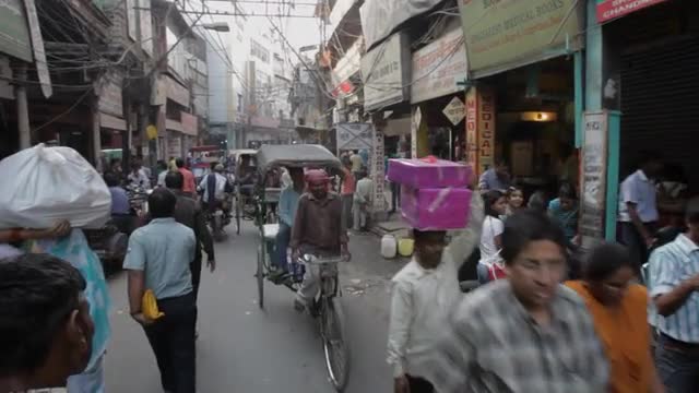 692095 - POV WS PAN Busy market street / New Delhi, India