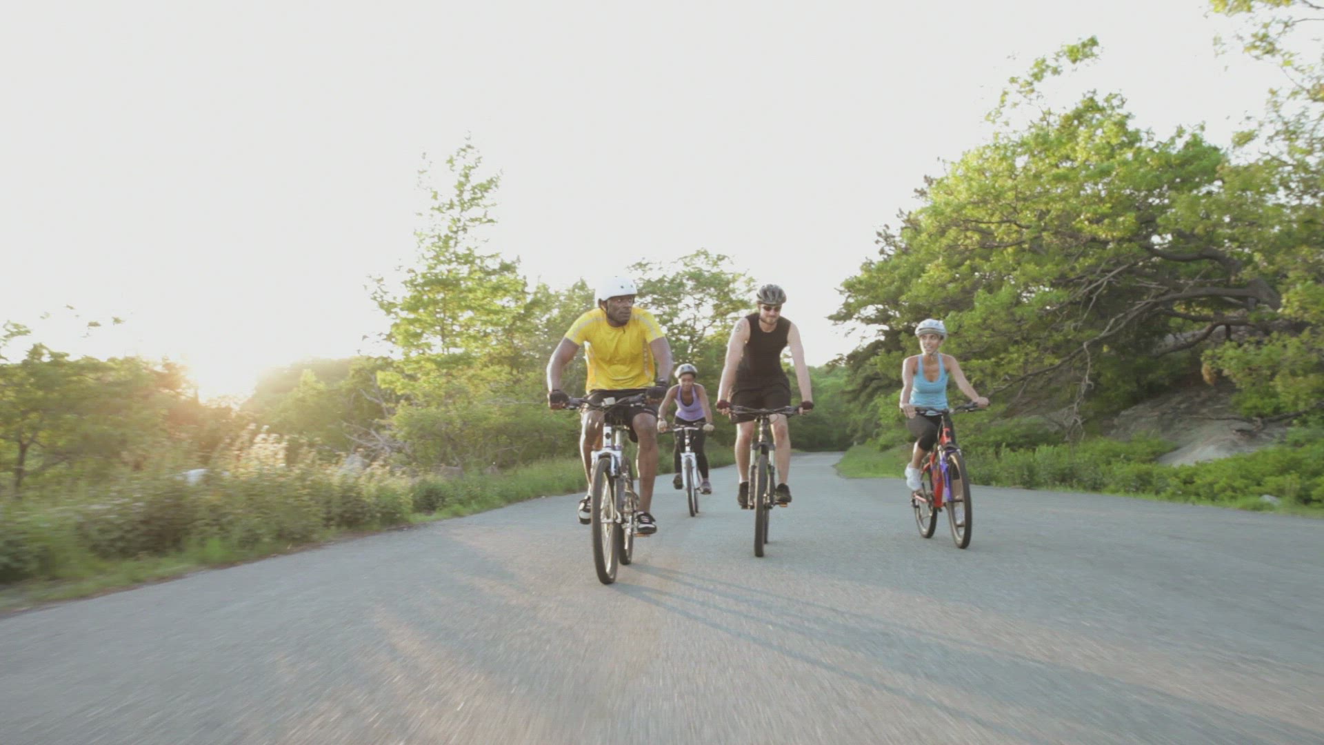 WS People Riding Bikes down Village Road / Saranth, India