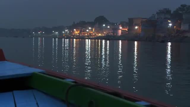 564528 - Dusk shot of a city shoreline on the Ganges river in India.