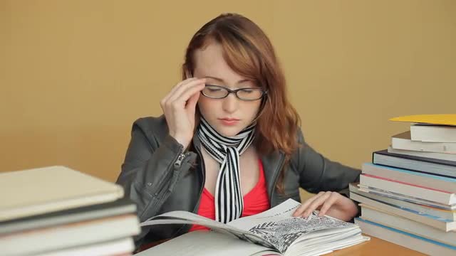 > CU TU Young Woman Wearing Glasses and Reading Book