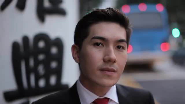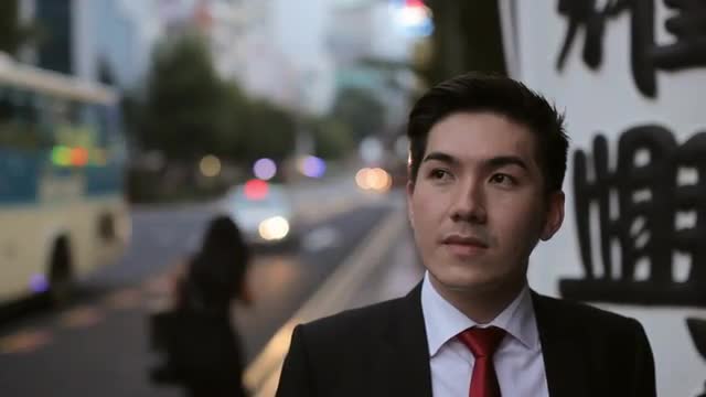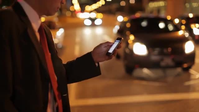 > MH TS Businessman Crossing Street While Texting on Phone at Night / Singapore