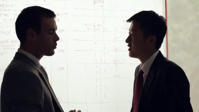 > MS Two businessmen discussing in front of white board / China
