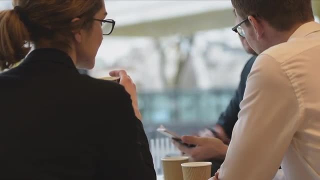 MS Young business man writing on white board, talking to colleague in office / China