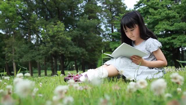 550085 - Japanese young girl relaxing with a book in a park, Tokyo, Japan