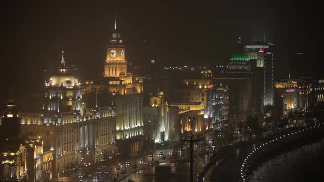 > WS HA View of traffic on street in The Bund district at night/ Shanghai, China
