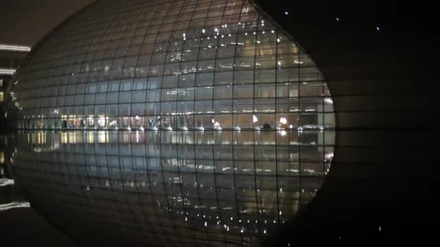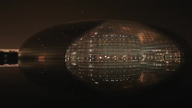 > WS PAN Forbidden City's rooftops, with National Grand Theater in background / Beijing, China