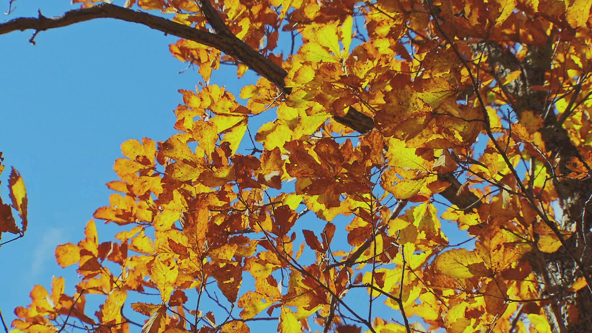 > CU LA Tree leaves moving in wind by red wall / China
