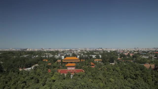 > WS PAN Cityscape with Forbidden City and trees in foreground / Beijing, China