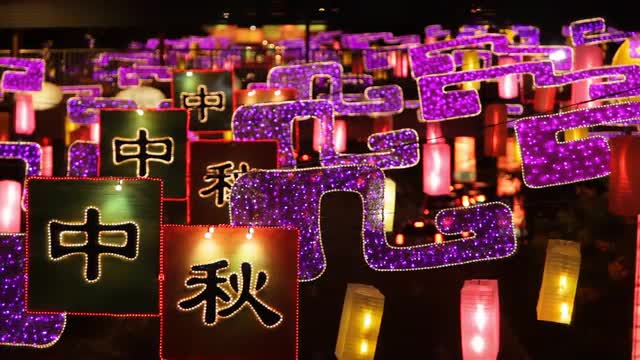 > MS Chinese lanterns hanging as decoration at night / Singapore
