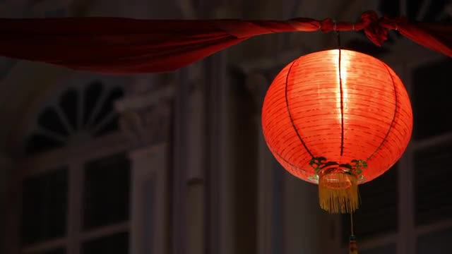 WS LA Chinese lantern illuminated at night / Singapore