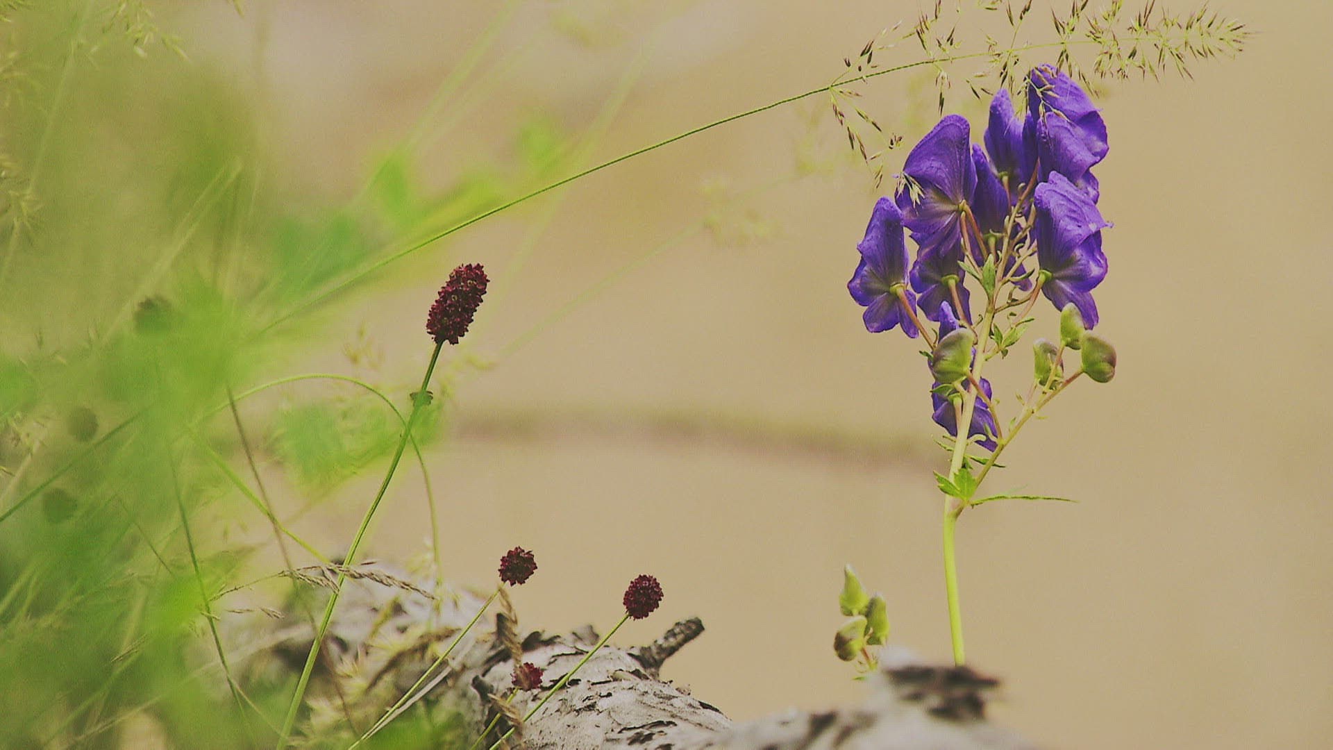 691713 - CU LD Red Flowers Blowing in Wind / Tuscany, Italy