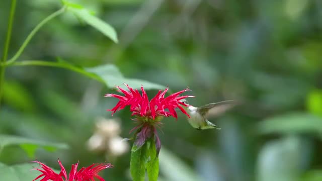 677656 - Hummingbird hovers & feeds on Monarda flower, high speed