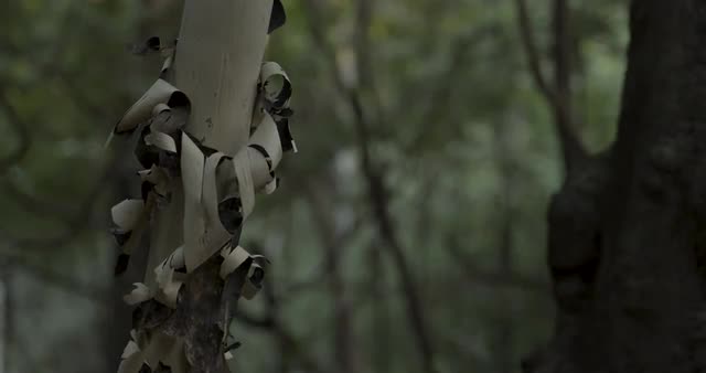 > Pan across trunk of a rainforest tree festooned with aerial roots in the Peruvian rainforest