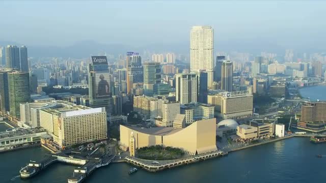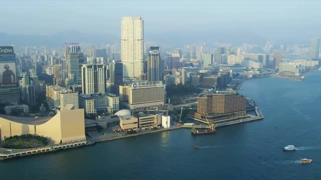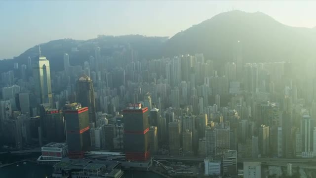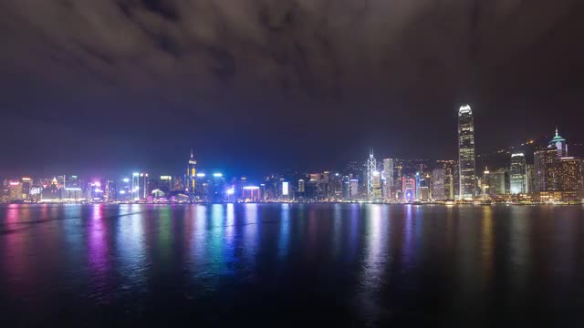 > MS LA 2 International Finance Centre illuminated at night / Hong Kong