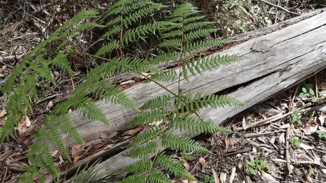 > MS HA Green fern against fallen tree / Australia