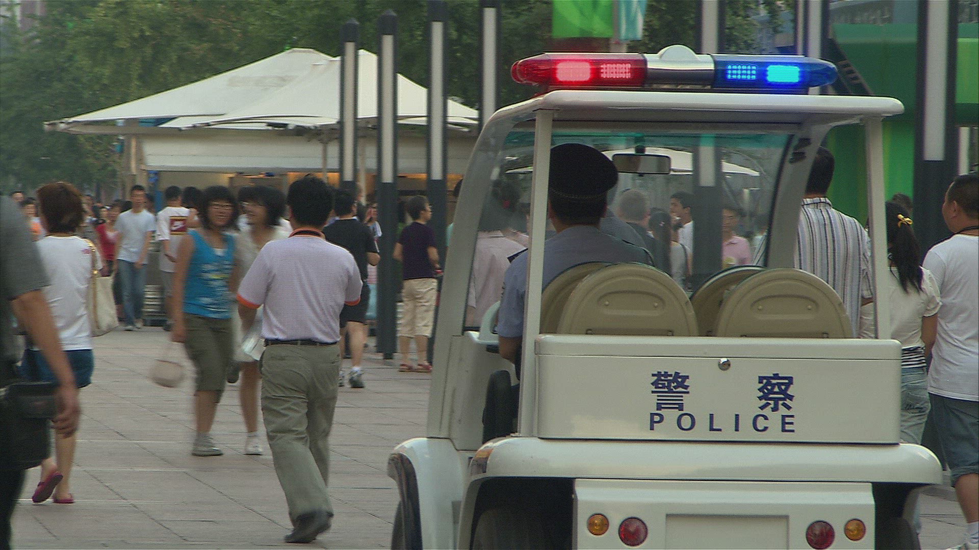 > WS TD Crowd of people walking down busy street / Macau, China