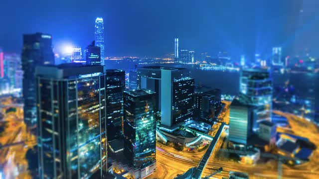 WS Boat with colorful flashing lights floating past building / Shanghai, China