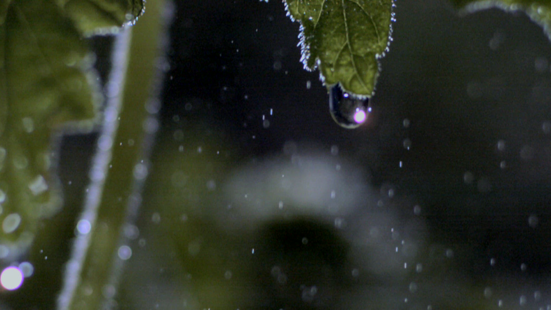 CU Rain pouring from thatched roof of hut