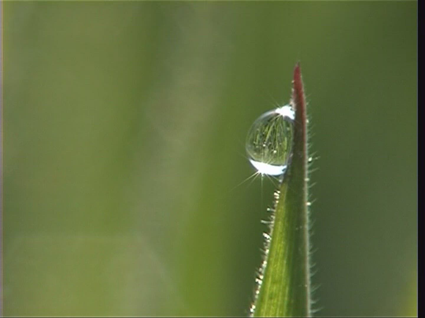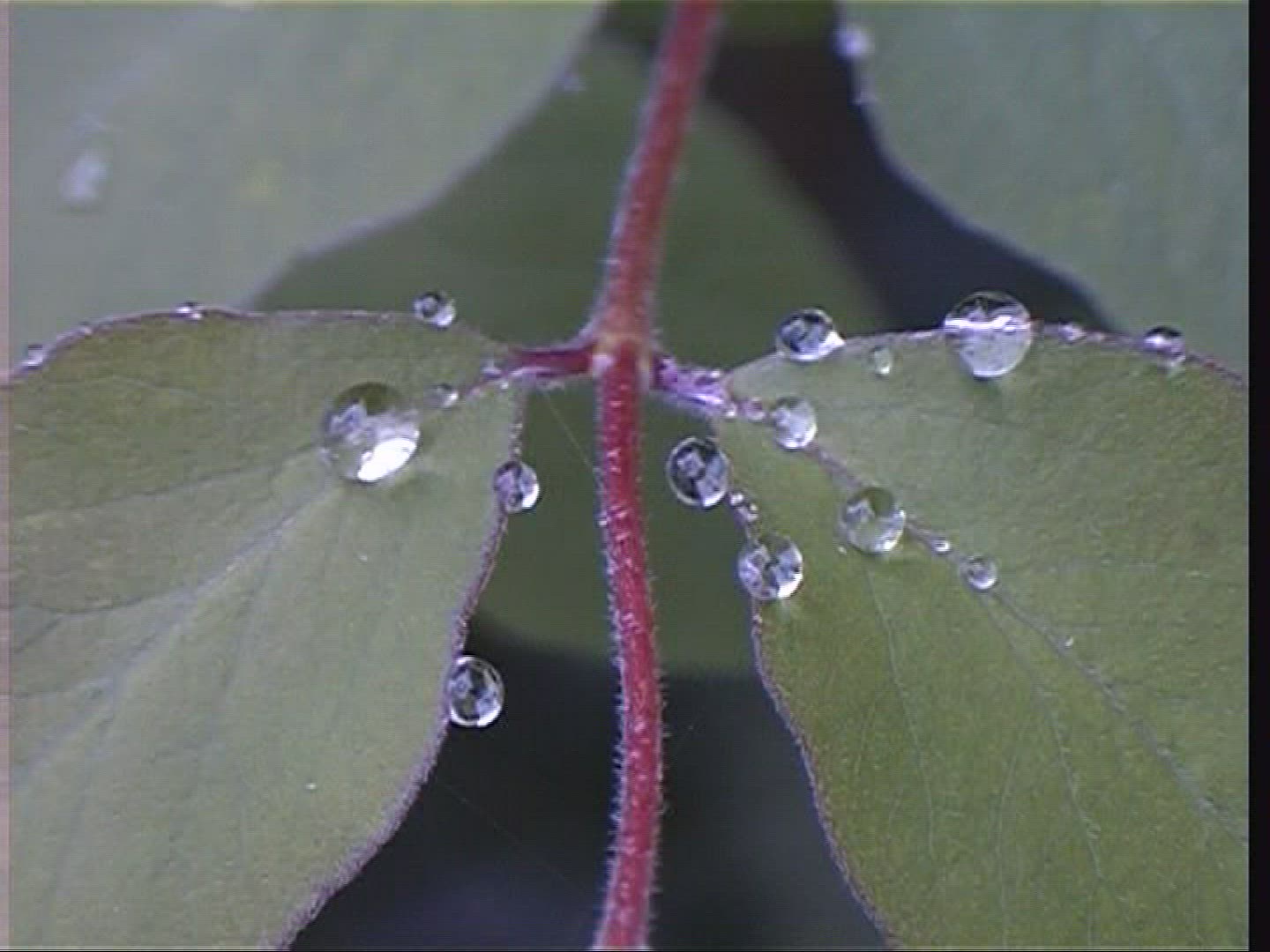 > CU Raindrops on leaf of plant