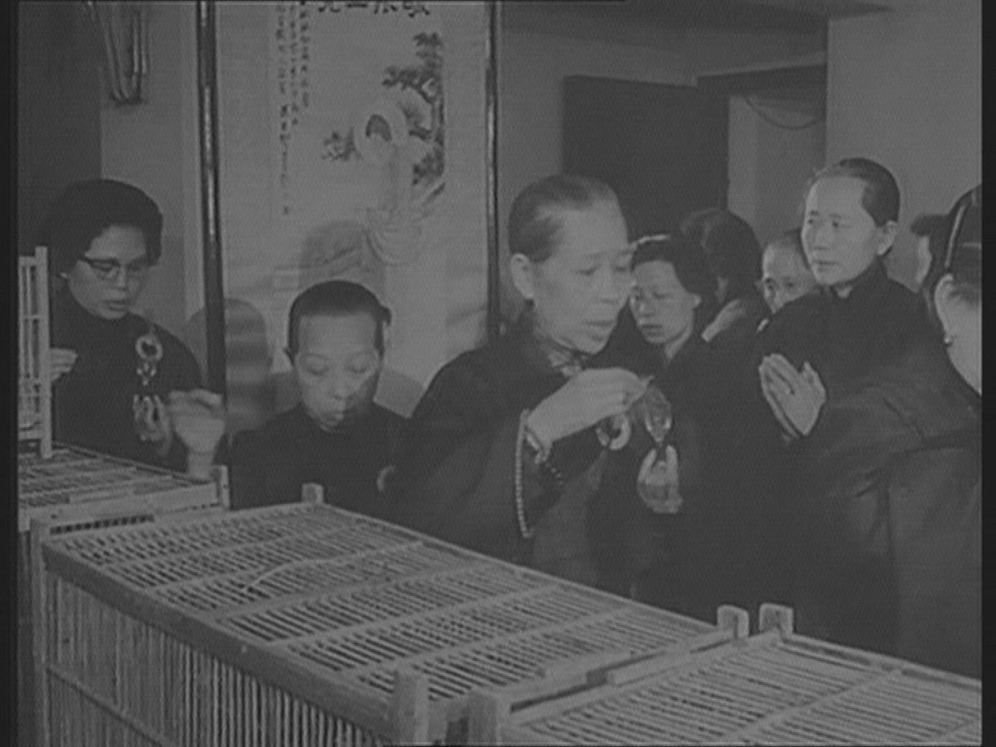 > CU Bird in bamboo cage outdoors / Hong Kong, China