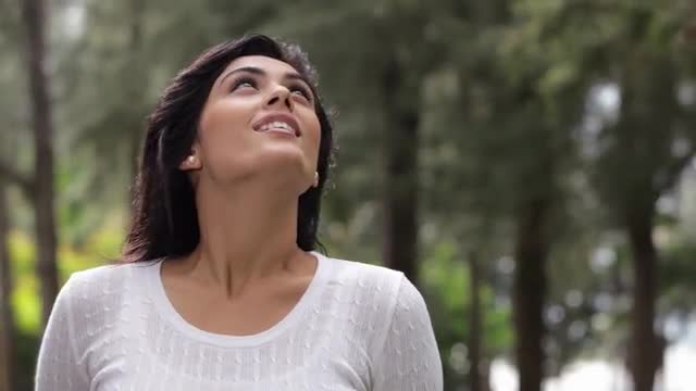 > CU Portrait of young woman covering face with fern leaves / Singapore
