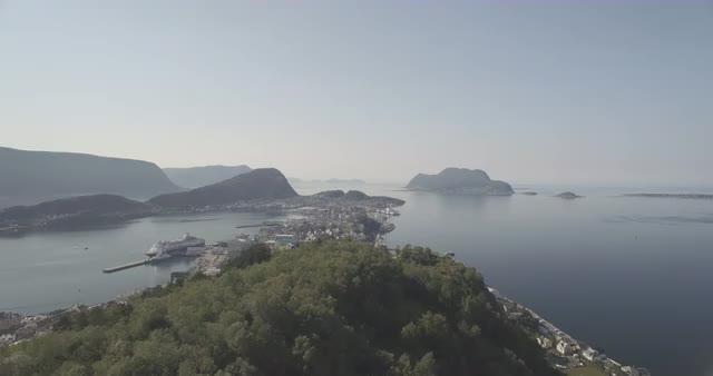 Aerial footage of Ålesund. A fishing village on the west coast of Norway.