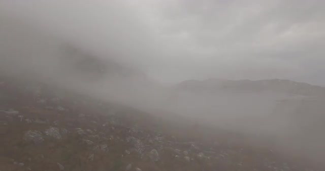 Aerial footage of some misty mountains.