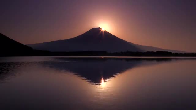 > Morning sun at Lake Tanuki, Shizuoka Prefecture, Japan