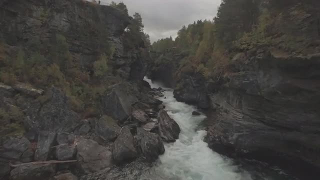 1362559 - River rocks, fall vegetation and ripples, long pan