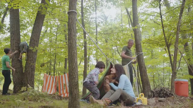 Mixed Race boys hanging upside-down on clothesline