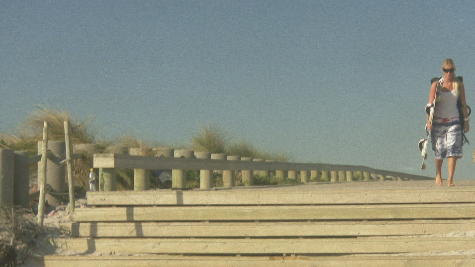 701176 - woman walking on beach carrying firewood on her head