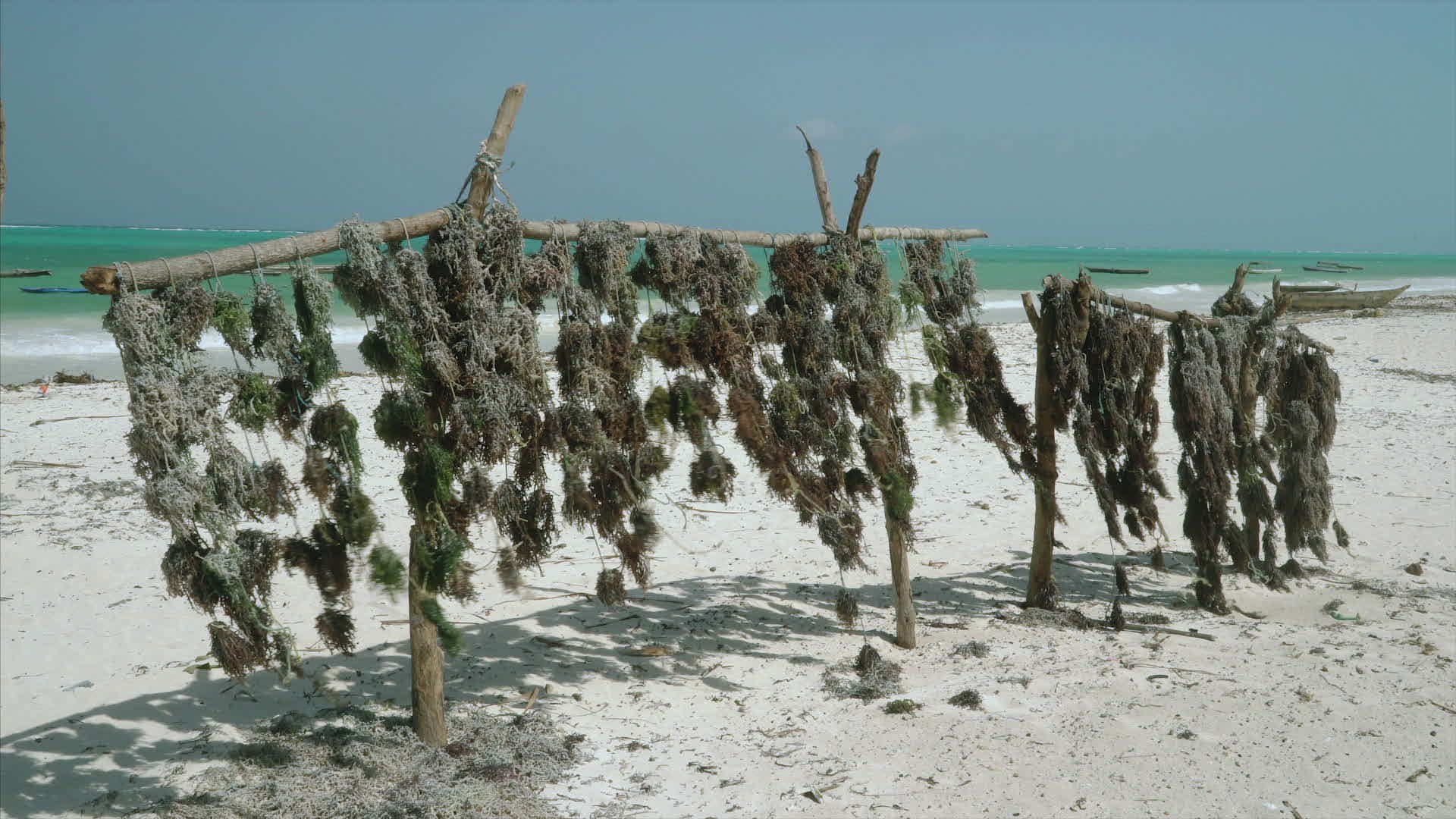 seaweed drying on beach on Zanzibar