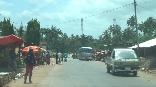 > point of view driving through village on Zanaibar