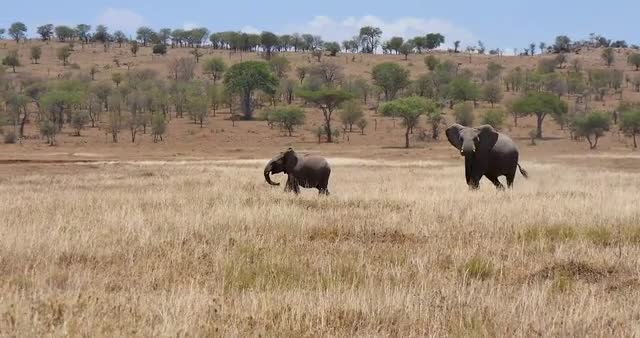 herd of elephants Walking on Savannah in Tanzania