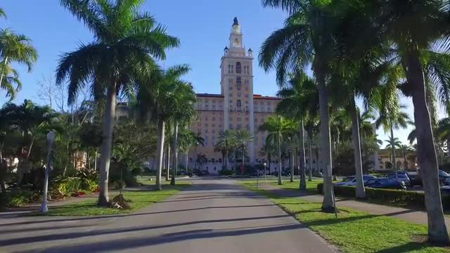Head on low angle from the street, the camera tilts down from the top of the building to the lobby entrance in front. Built in the 1920s, the Cecil Hotel in Downtown Los Angeles has become known for criminal activity including serveral murders, suicides, and mysterious deaths such as Elisa Lam in 2013. It has also been the residence for serial killers Richard Ramirez and Jack Unterweger.