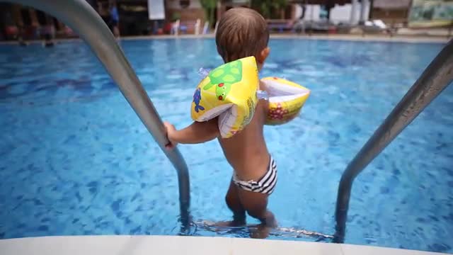 700153 - young boy learning to crawl in swimming pool