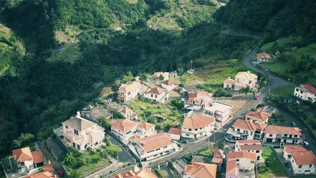 Aerial View of the Typical Town in Mountains, Madeira Portugal